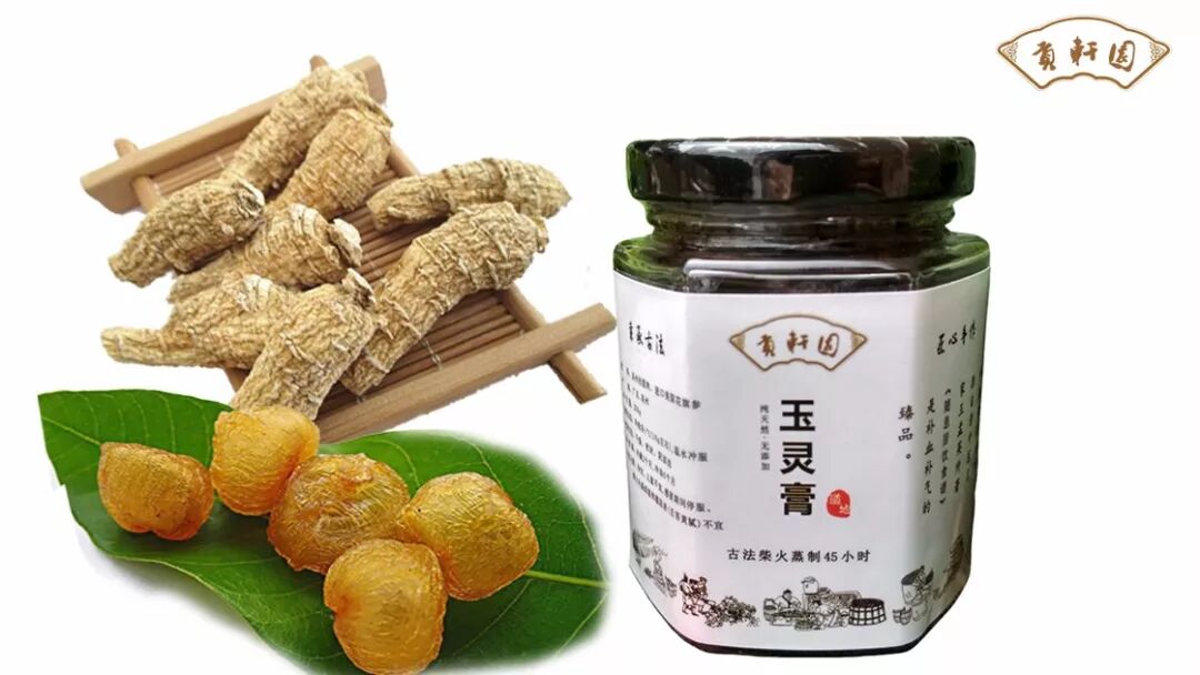 西洋参性凉,是一种补而不燥、补气养血、滋阴补肾、健脾养胃的补品,龙眼肉原本性热,但经过45小时的蒸熬,甜味变微苦,热性去掉不少,再经西洋参性凉中和,所以熬制45小时以上的玉灵膏一般不会令人上火。